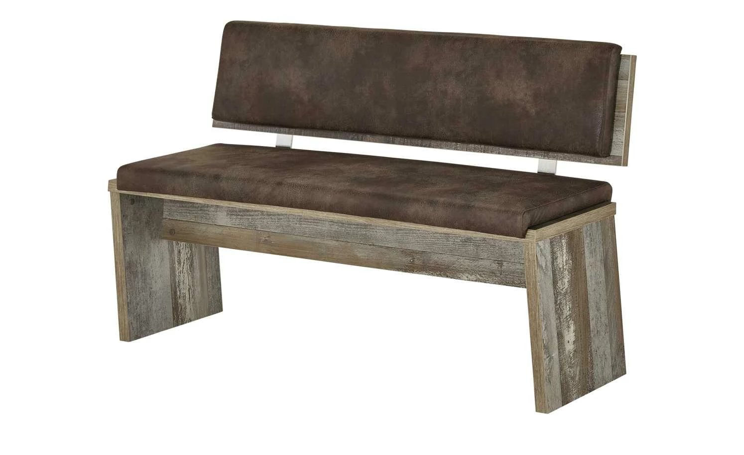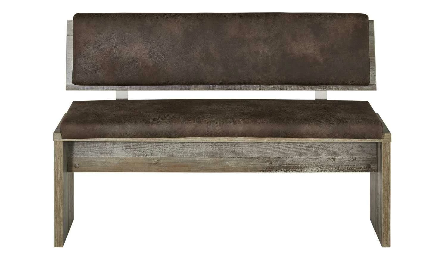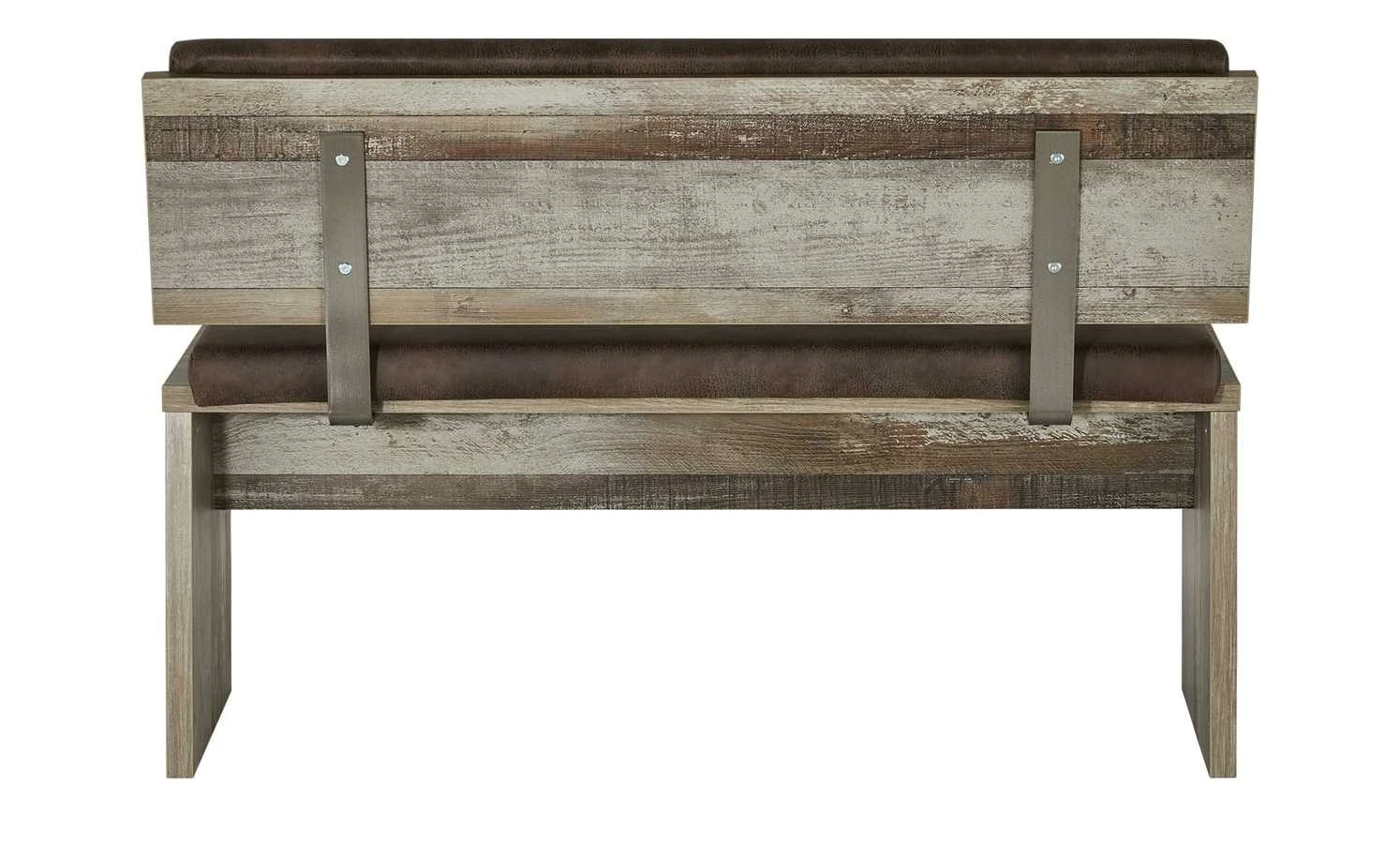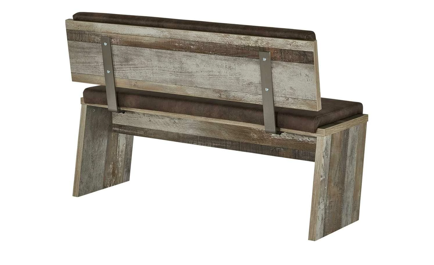 Die Bank Sedona ist eine komfortable Sitzgelegenheit und sieht auch noch extravagant aus. Wie die anderen Möbel der Serie, ist auch die Bank in dem auffälligen Treibholz-Look gehalten. Die Bank steht auf zwei stabilen Wangen, die angeschrägt sind. Für den richtigen Sitzkomfort sorgen die Kissen auf Sitzfläche und an der Rückenlehne. Der Polyesterstoff in Braun hat eine Lederoptik im Used-Look.