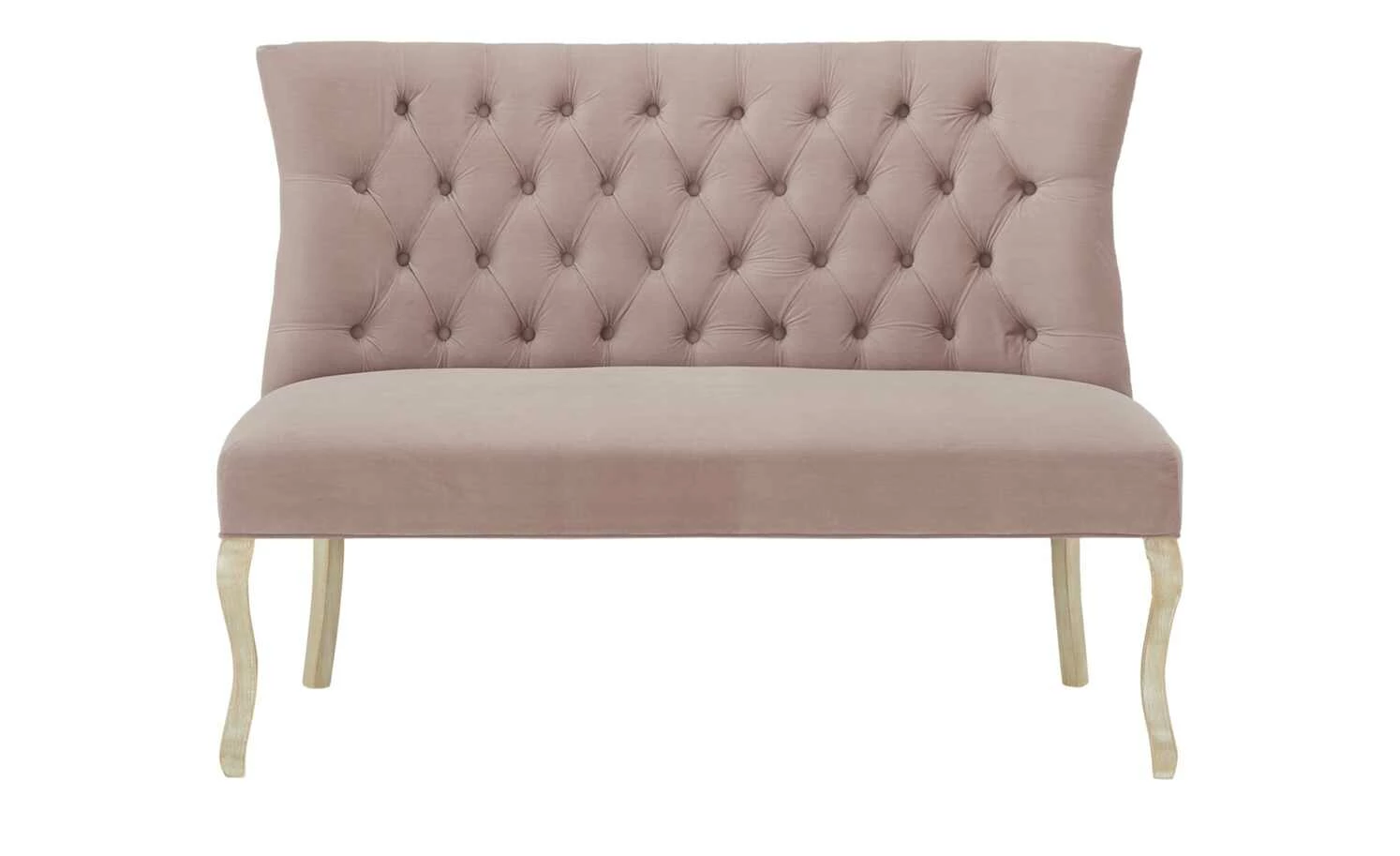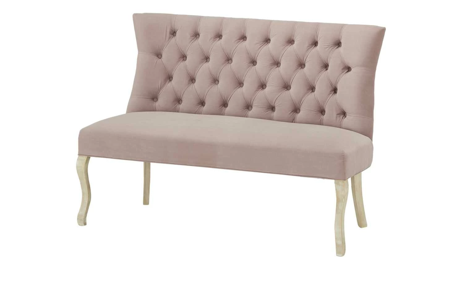 Die erste Höffner Bloggerkollektion setzt auf angesagte Designs und beste Qualität. Die stylischen It-Pieces sind von YouTube- und Instagram-Star Cita Maass kreiert worden. Teil der Serie ist die Bank Felicia, die ein toller Eyecatcher ist. Zwei Personen können bequem auf der Bank Platz nehmen. Die Rückenlehne hat eine angenehme Höhe – und ist dekorativ gesteppt und mit Zierknöpfchen versehen. Der samtige Bezug hat ein glänzendes Finish, wodurch sein feiner Roséton noch eleganter wirkt. Geschwungene Beine aus massivem Gummibaum sorgen für einen sicheren Stand und runden den Gesamtlook ab.