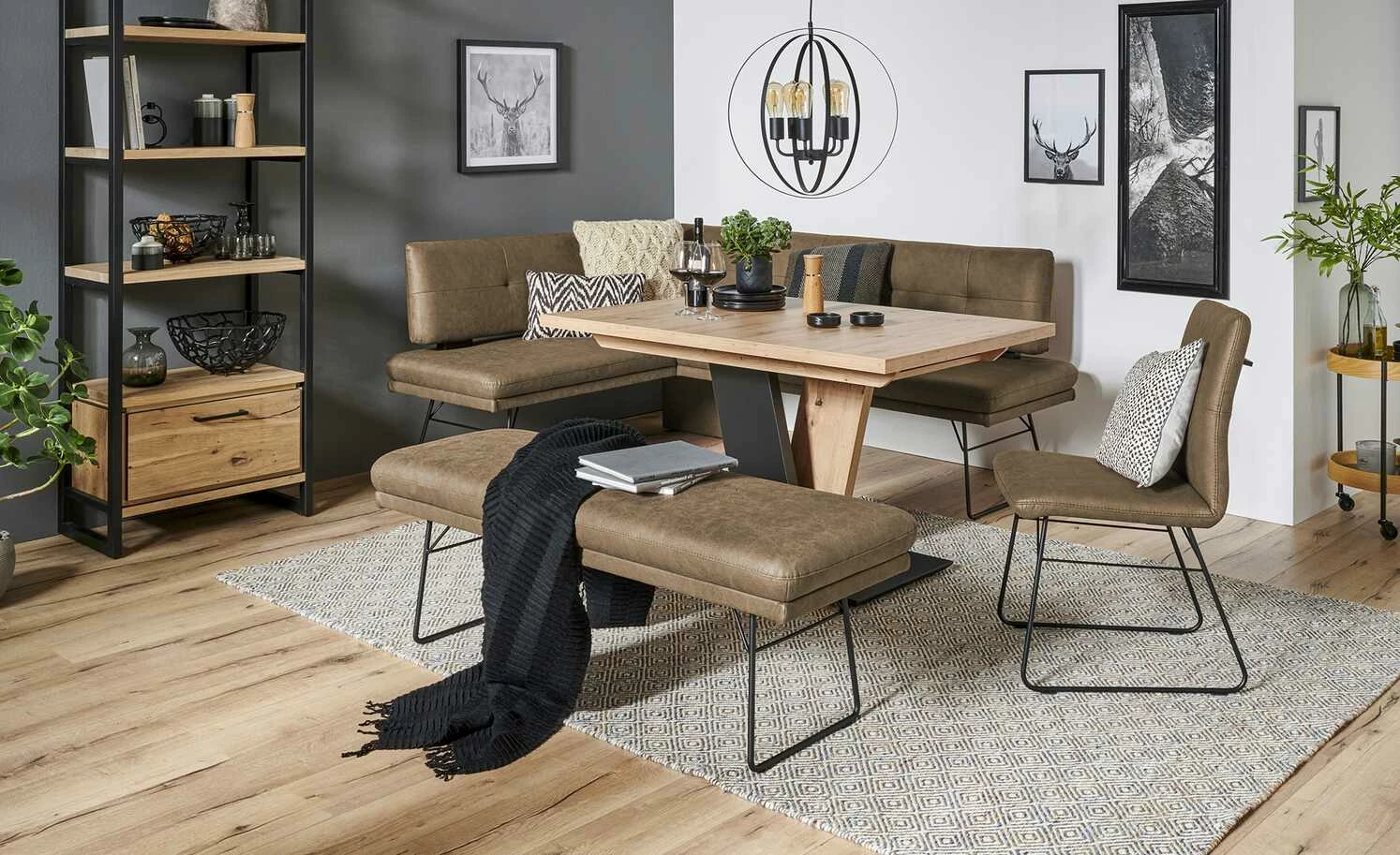 - Mehr zum Material: Distanzhalter aus Buchenholz Schwarz lackiert, Polsteruntergestell aus stabilem Buchen- und Schichtholz, Kufen in Metall Schwarz, strukturiert