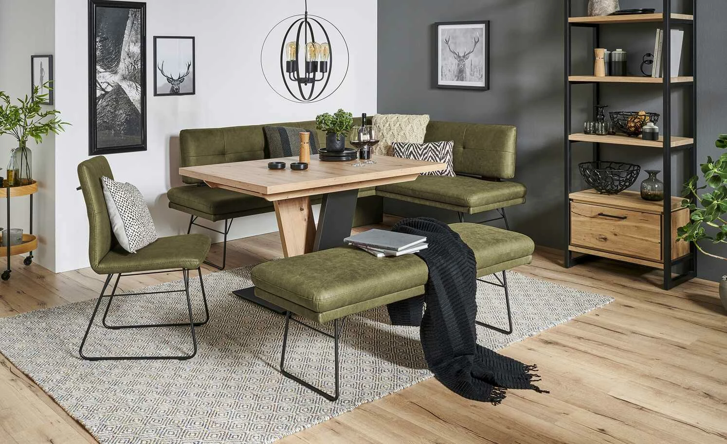 - Mehr zum Material: Distanzhalter aus Buchenholz Schwarz lackiert, Polsteruntergestell aus stabilem Buchen- und Schichtholz, Kufen in Metall Schwarz, strukturiert