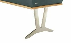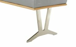 KOINOR Leder-Kufen-Bank auf Holzpodest drehbar Schwof | Asphalt (Hellgrau) / Kontrastfaden Schwarz Drehfunktion