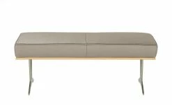 KOINOR Leder-Hockerbank Sqare | Nebbia (Taupe) / Kontrastnaht Dunkelbraun 104|cm