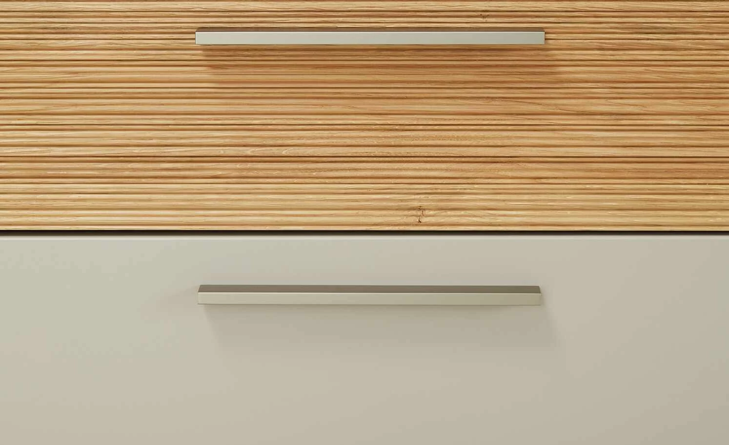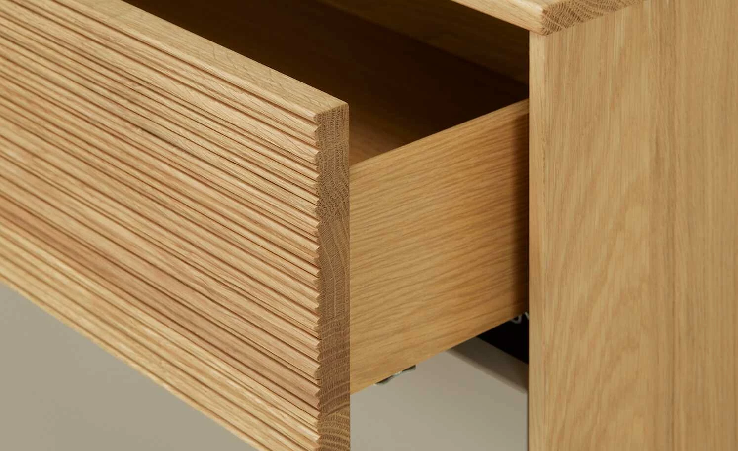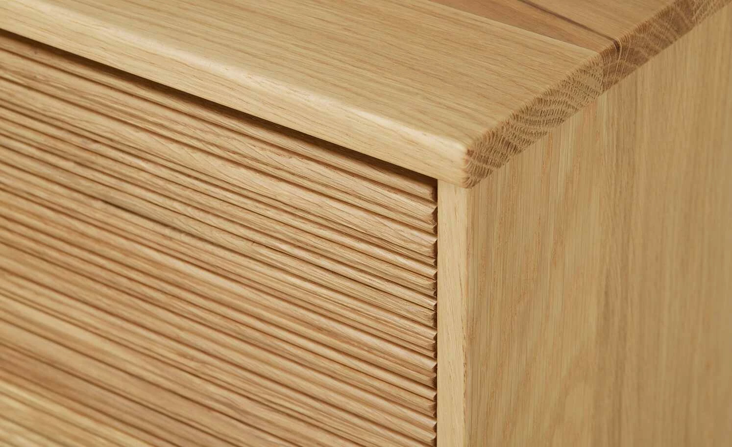 - Mehr zum Material: Material obere Schublade: Massivholz Eiche Bianco mit Tiefenstruktur