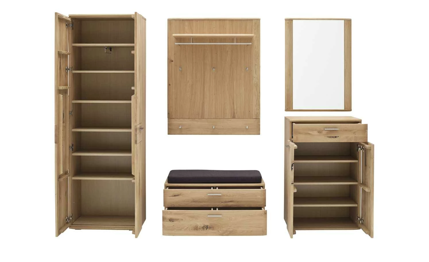 - Mehr zum Material: Front: Balkeneiche Bianco massiv, geölt