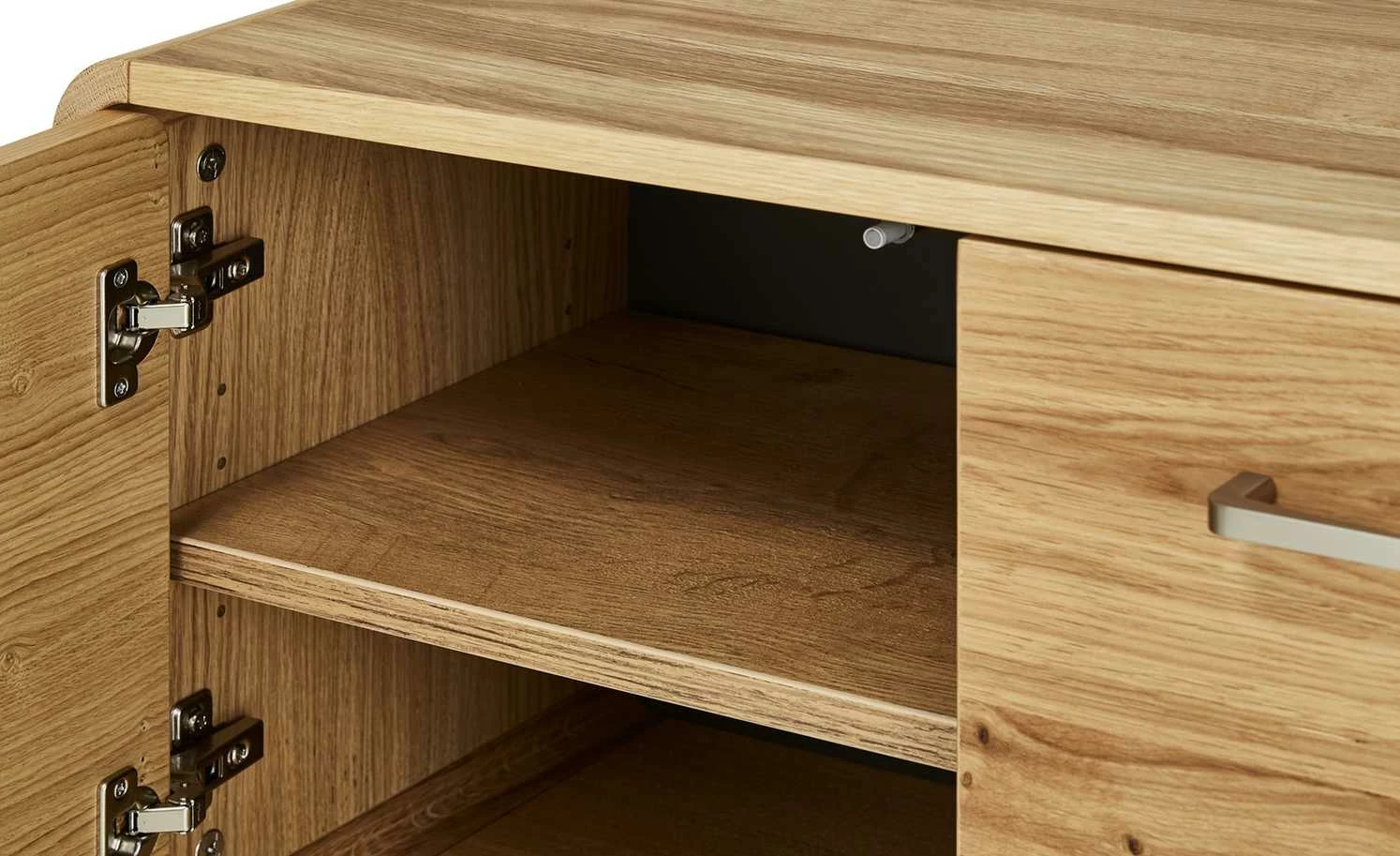 - Mehr zum Material: Material Einlegeböden: Holzwerkstoff mit Balkeneichen-Furnier , Griffe aus Metall