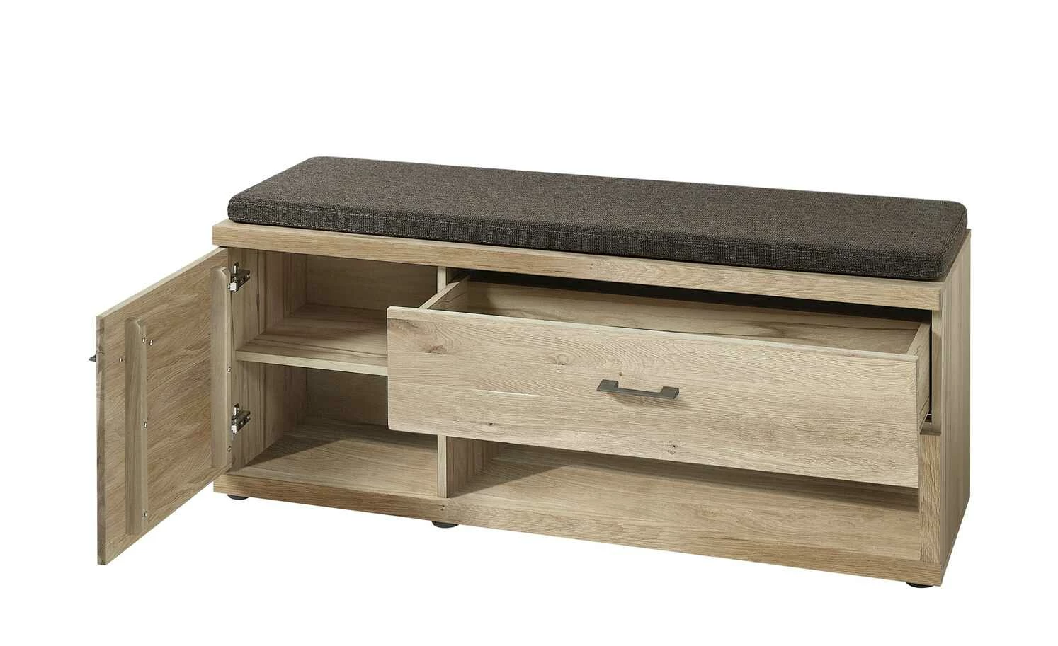 - Mehr zum Material: Farbe Sitzkissenbezug: Graubraun (meliert), Material Sitzkissenbezug: 100% Polyester , Absetzung: Wildeiche mit Baumkantenprofil