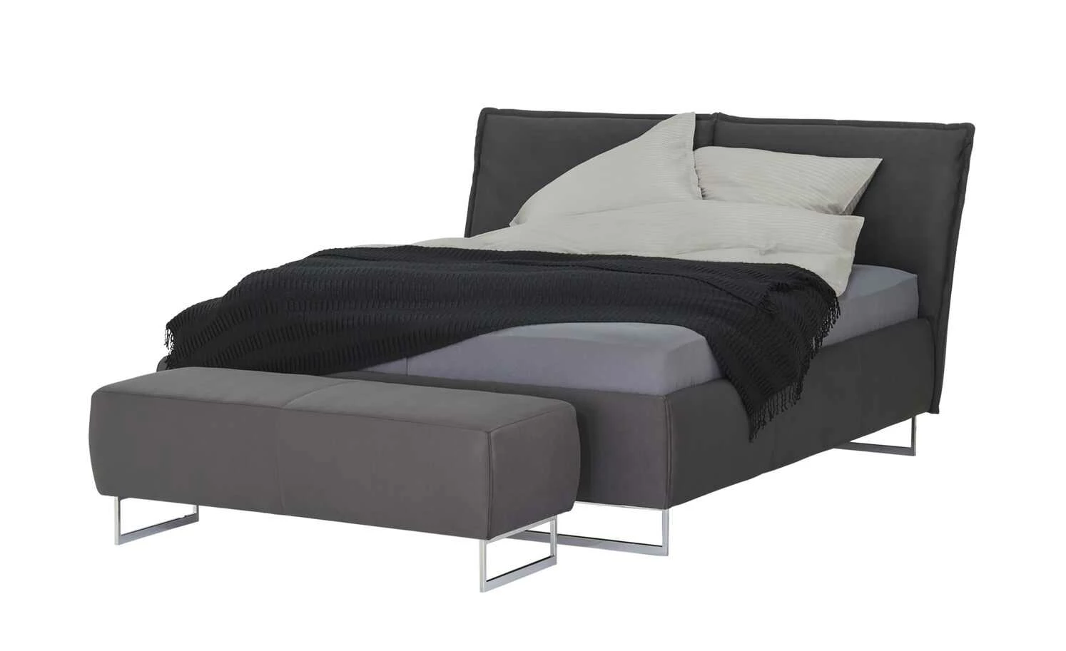 Die Marke JOOP! steht für eine markante Designsprache, die sich durch eine breite Palette an Stilen auszeichnet. Ausgesuchte Designs und hochwertigste Premium-Markenqualität sorgen für ein glamouröses Ambiente mit einem Hauch Extravaganz. Mit ihrem zeitlosen Bezug in Dunkelgrau passt diese Marken-Bettbank in zahlreiche Einrichtungsstile. Am besten lässt sie sich zu dem gleichnamigen JOOP!-Bett kombinieren. Doch auch in modernen Fluren und Eingangsbereichen macht sie eine gute Figur. Die 164 x 54 Zentimeter große Sitzfläche ist komfortabel gepolstert und dezent abgesteppt. Moderne, luftig designte Metall-Kufenfüße verleihen der Bettbank einen modernen Touch und sorgen für eine Komfort-Sitzhöhe von 50 Zentimetern.