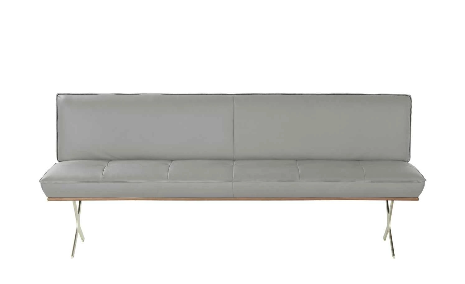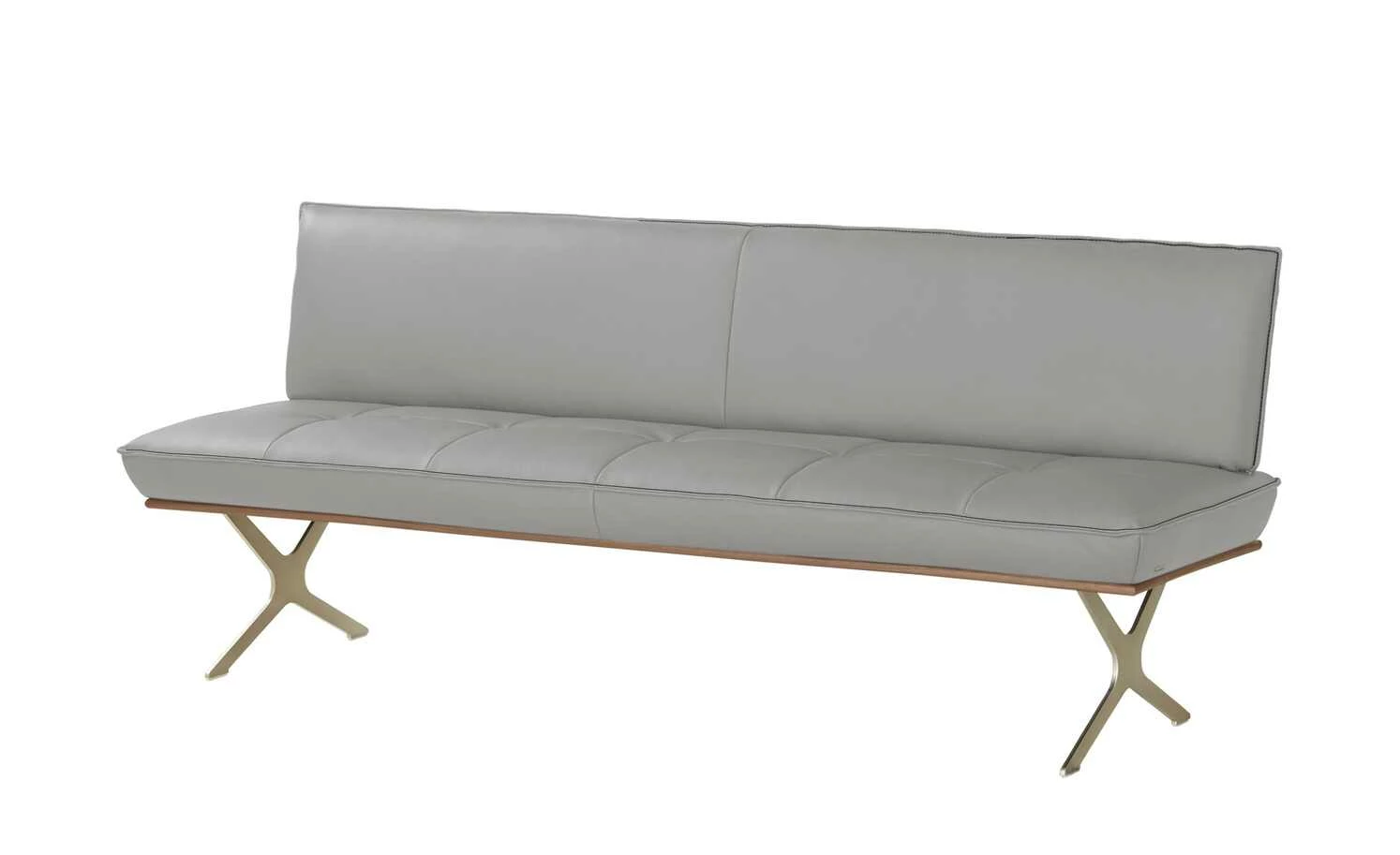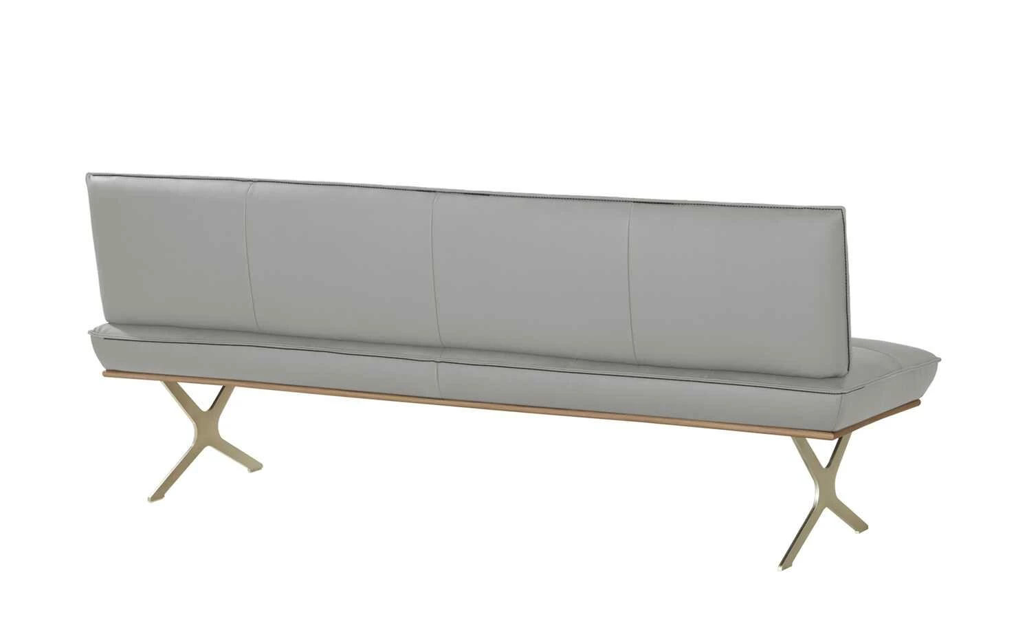 Mit der Sitzbank Dining System 1 holen Sie sich moderne Eleganz in Ihre Küche oder ins Wohn- und Speisezimmer. Die komfortabel gepolsterte Küchenbank steht auf x-förmigen Füßen aus satiniertem Nickel und scheint nahezu zu schweben. Die schmalen Füße münden in einem circa zwei Zentimeter dicken Plateau, das hochwertig mit Echtholz furniert wurde. Die Materialkombination aus Metall und Echtholz wird mit seidenmattem Nappaleder als Bezugsstoff komplettiert. Nehmen Sie auf der abgesteppten Sitzfläche Platz und genießen Sie auch beim Speisen höchsten Komfort in Markenqualität. Die Sitzbank Dining System 1 passt mit ihrer Sitzhöhe von ca. 49 Zentimetern zu zahlreichen Esstischen. Unikate gefertigt in Bayern: Die Marke KOINOR steht für einzigartige Komfortfunktionen und individuelles Design. Unter Verwendung hochwertigster Materialien entstehen Möbel mit Vorzeigecharakter.