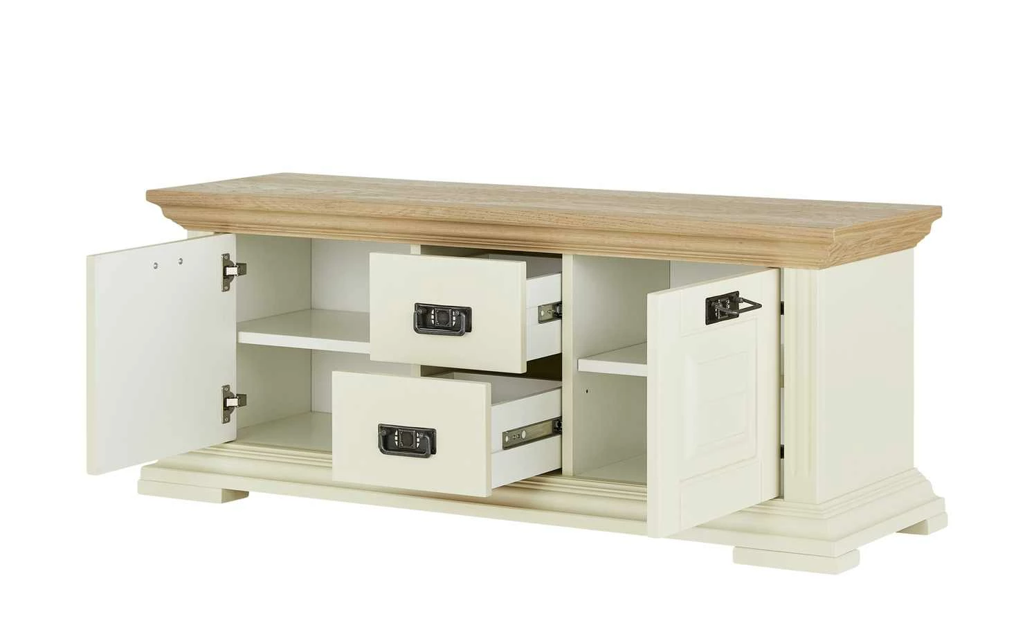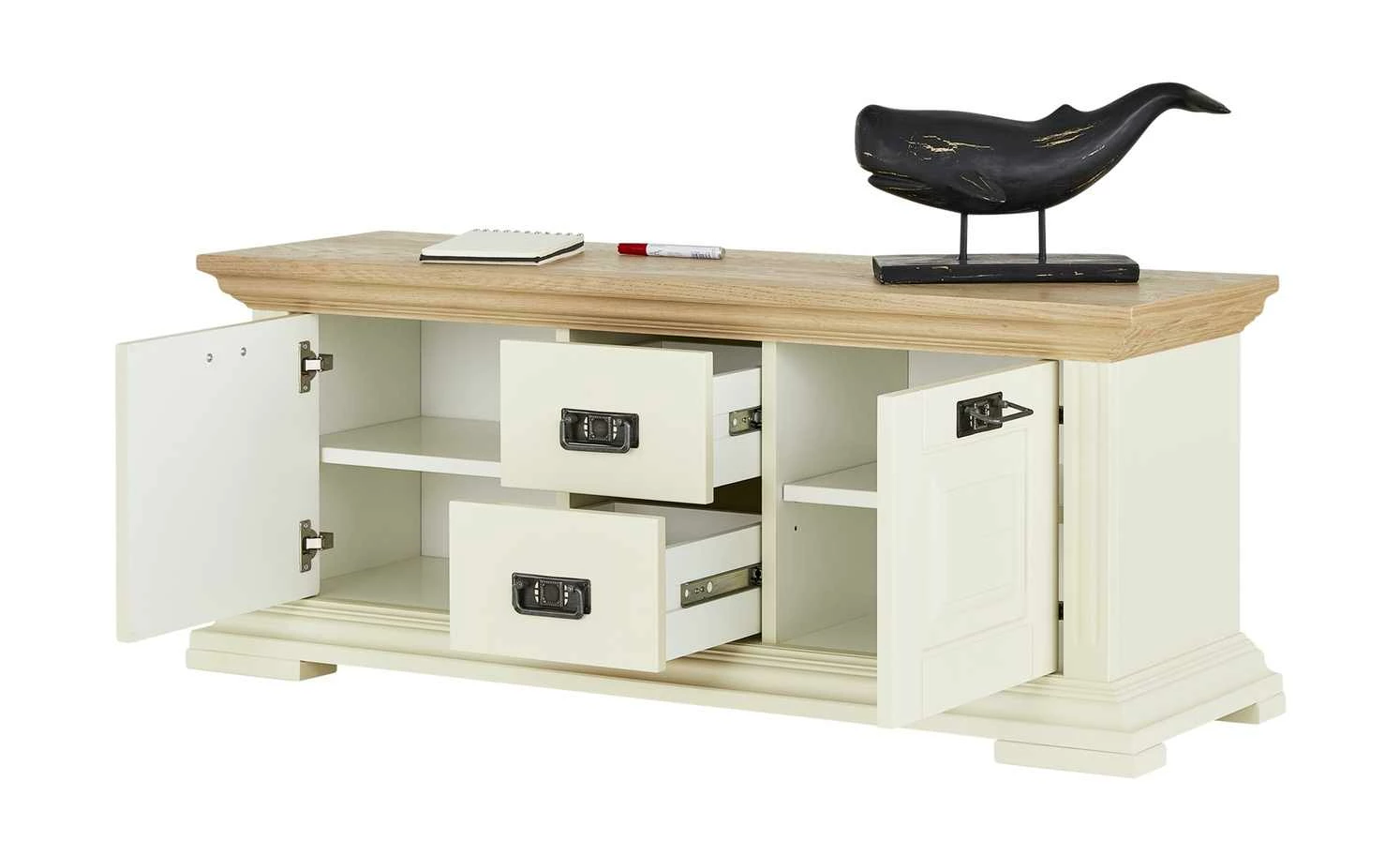 - Mittig zwei geräumige Schubladen