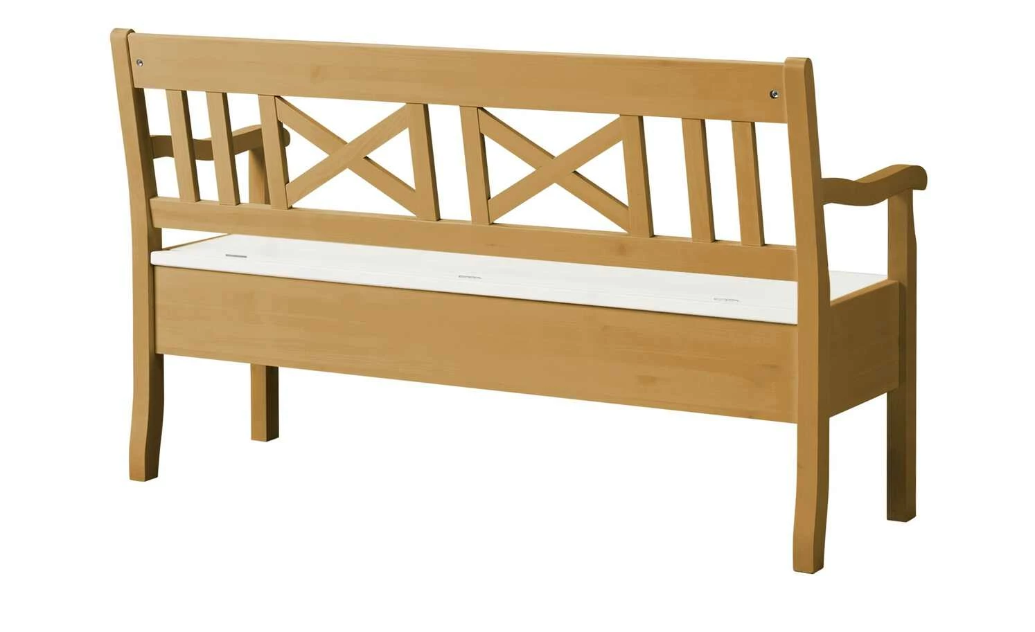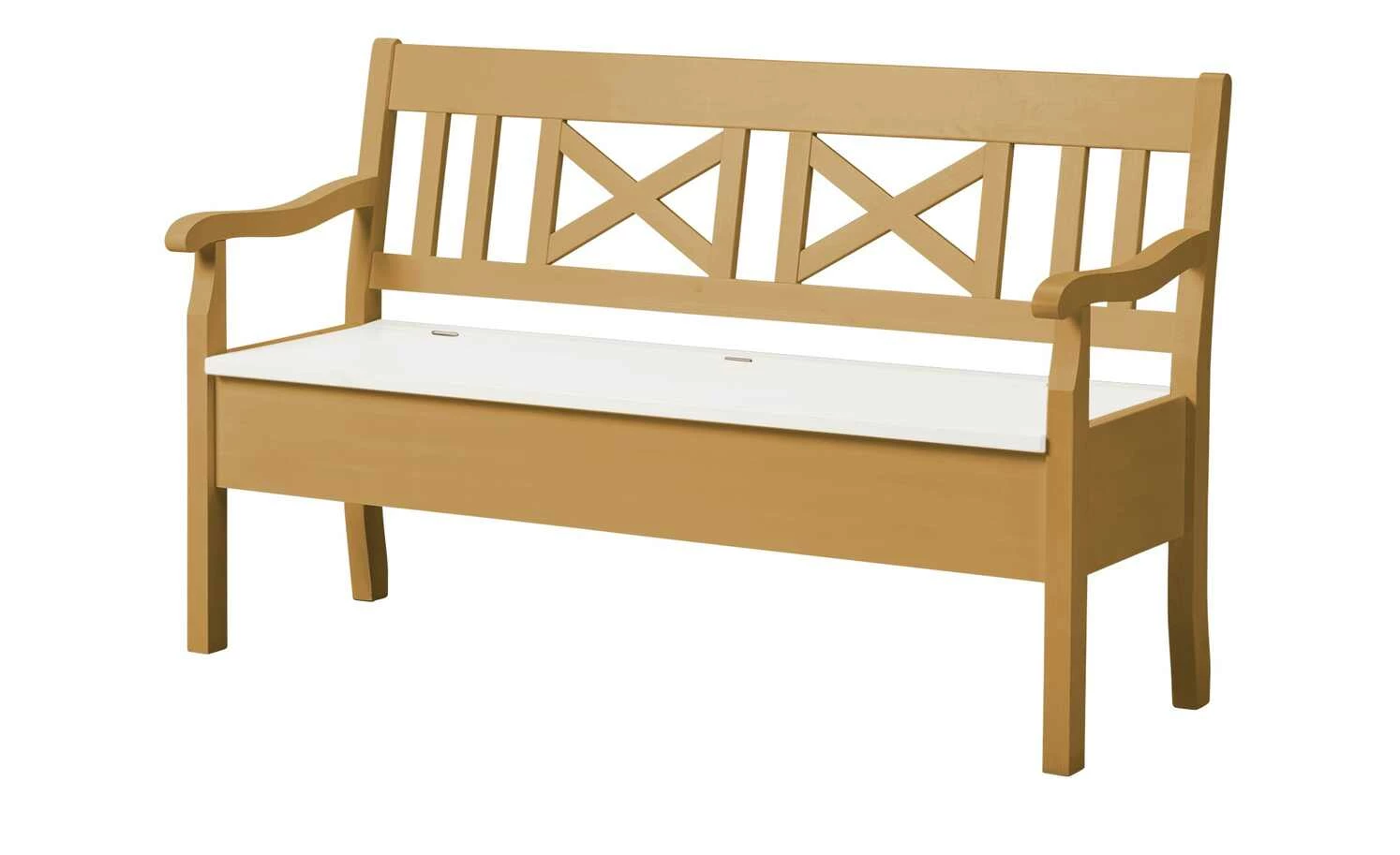 Die Sitzbank Florian macht in Ihrem Ess- oder Wohnzimmer oder sogar in der Küche eine gute Figur. Florian besteht aus massiver Kiefer, die gebeizt und lackiert oder geölt wurde. Trotz des Lacks ist die Maserung des Holzes gut erkennbar, was die Sitzbank natürlich wirken lässt. Die Bank ist im Landhausstil gehalten und passt sehr gut zu den anderen Modellen der Serie Florian. Besonders praktisch ist der große Stauraum unter der Sitzfläche. Entscheiden Sie sich zwischen einem rustikalen Design Ton in Ton, oder dem kontrastreichen Design mit farblich abgesetzter Sitzfläche.