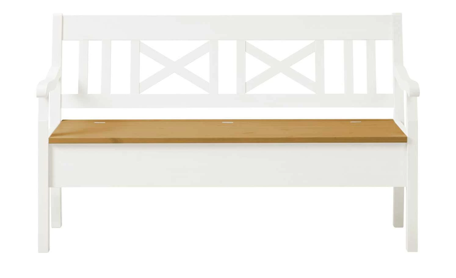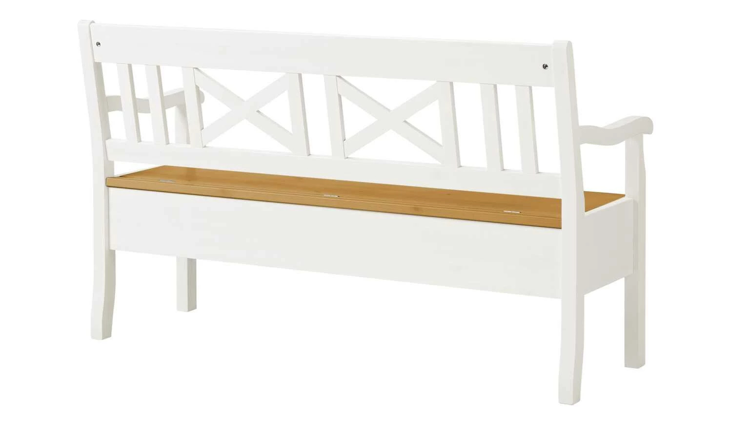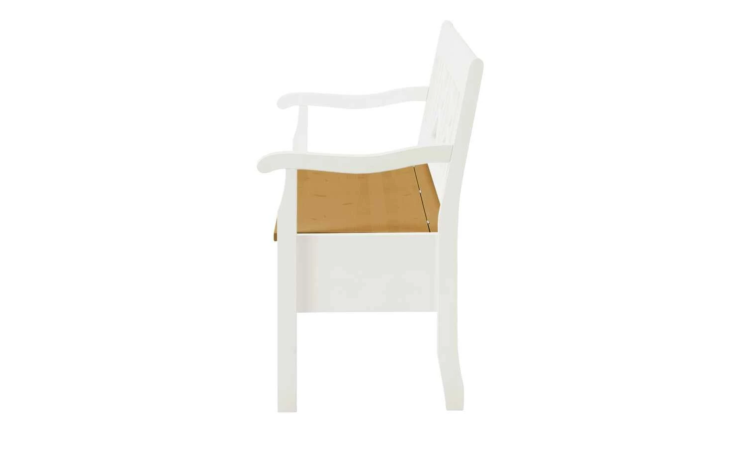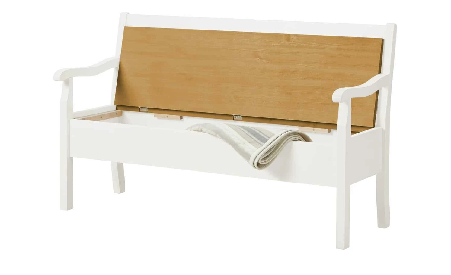 Die Sitzbank Florian macht in Ihrem Ess- oder Wohnzimmer oder sogar in der Küche eine gute Figur. Florian besteht aus massiver Kiefer, die gebeizt und weiß lackiert wurde. Trotz des Lacks ist die Maserung des Holzes gut erkennbar, was die Sitzbank natürlich wirken lässt. Die gesamte Sitzfläche setzt sich in einem warmen Laugenton ab. Florian ist im Landhausstil gehalten und passt sehr gut zu den anderen Modellen der Serie Florian. Besonders praktisch ist der große Stauraum unter der Sitzfläche.