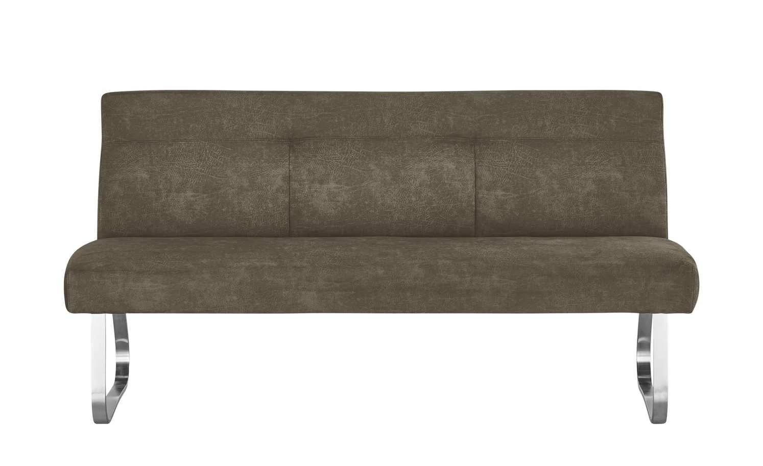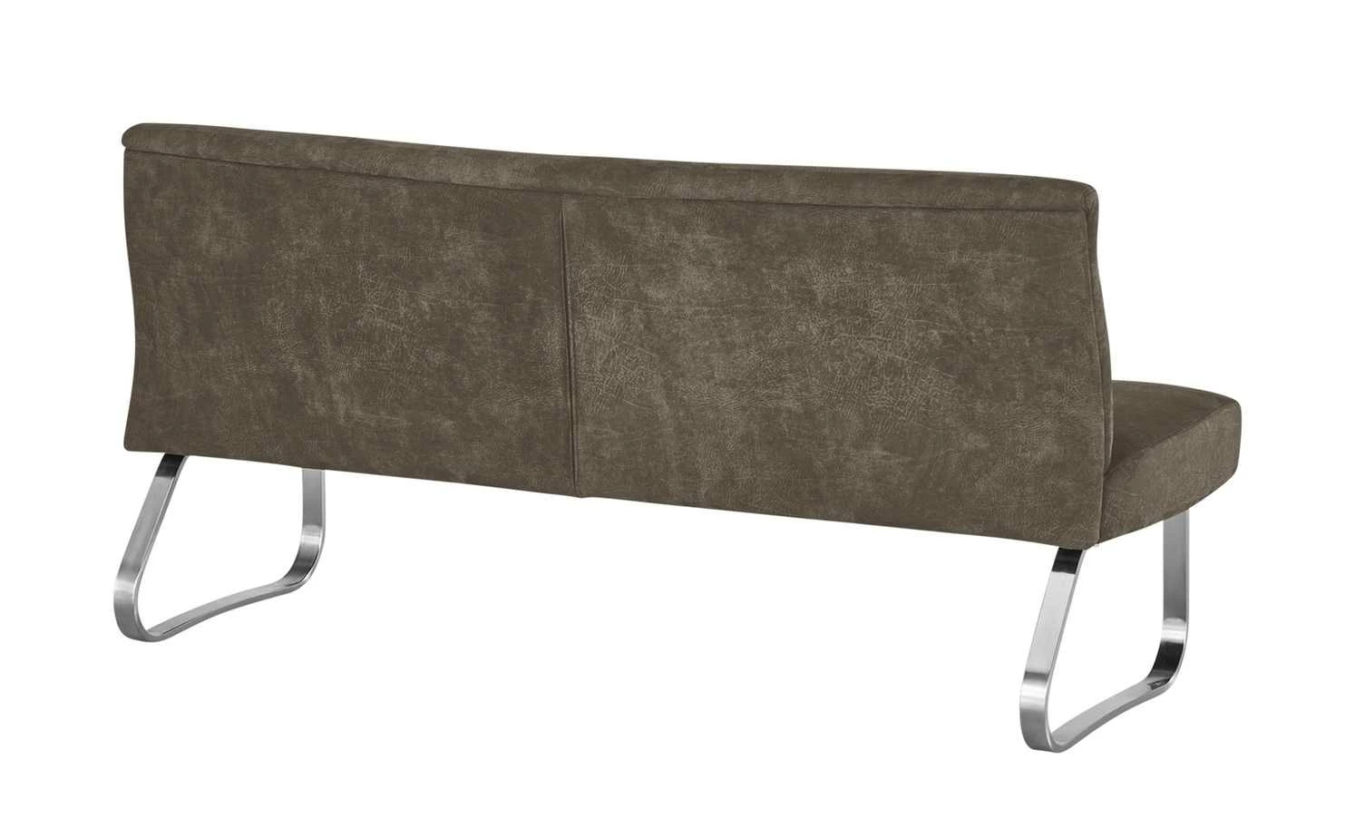 Auf dieser modernen Bank können gleich mehrere Personen Platz nehmen. Dank der dick gepolsterten Sitzfläche und Rückenlehne ist für den nötigen Sitzkomfort gesorgt. Der softe Mikrofaserbezug ist pflegeleicht und besitzt einen attraktiven Used-Look. Lenata besitzt Kufenfüße aus gebürstetem Metall und fügt sich daher besonders gut in moderne Einrichtungsstile ein.