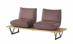 KOINOR Leder-Kufen-Bank auf Holzpodest drehbar Schwof | Plum (Rosa) / Kontrastfaden Hellgrau Drehfunktion