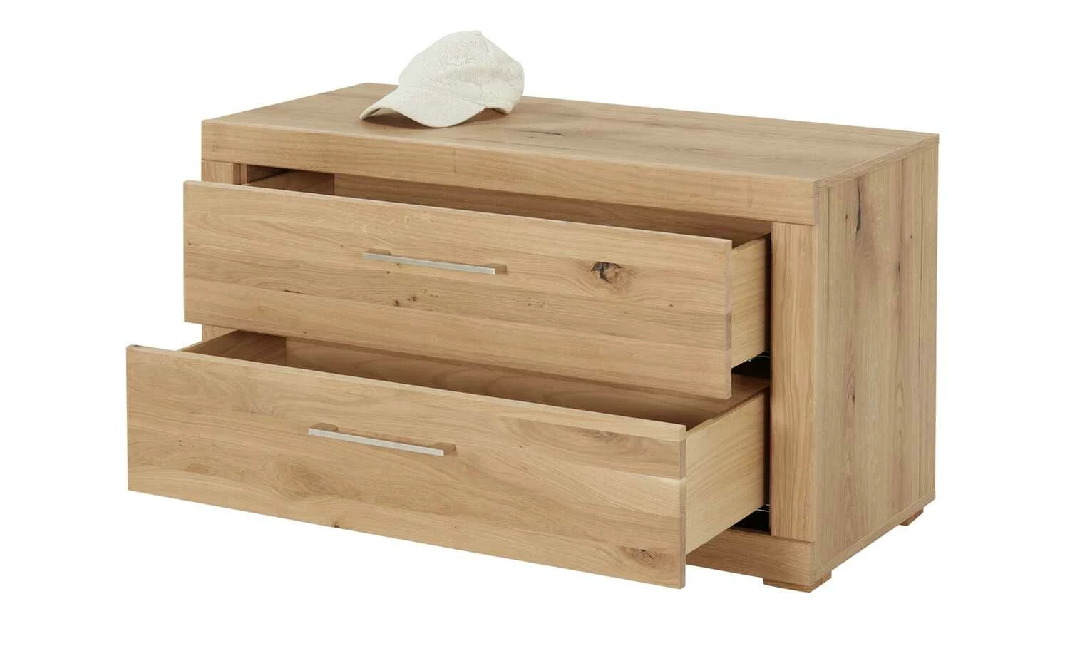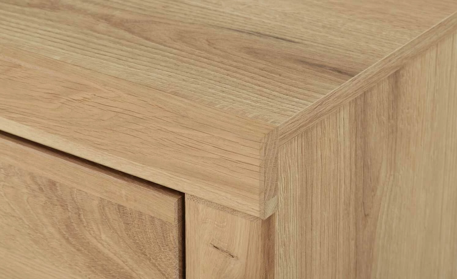 - Mehr zu Ausstattung / Funktion: Rahmen aus Massivholz geölt, separates Scandi-Fuß-Set unter Zubehör erhältlich, Schubkasten mit Selbsteinzug