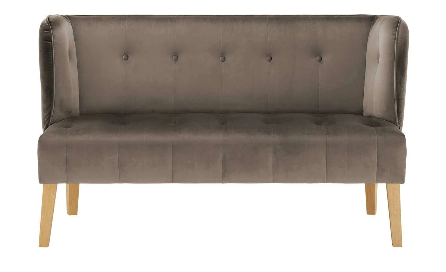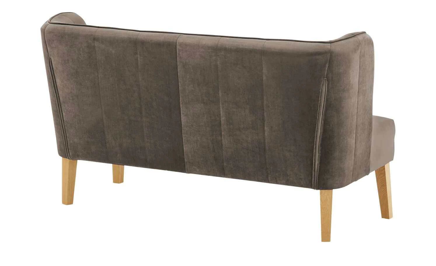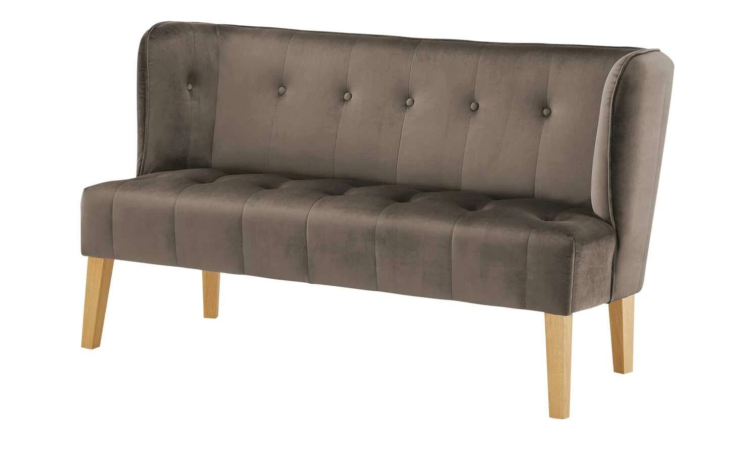Das Küchensofa Bella fällt durch seinen leicht schimmernden, samtig weichen Mikrofaserbezug sofort ins Auge. Die dekorativen Zierknöpfe und die Längs-Steppung lassen Bella edel und gemütlich zugleich erscheinen. Die hochwertige Schaumstoffpolsterung und die Wellenunterfederung sorgen für langanhaltenden Sitzkomfort bei einer Sitzhöhe von 51 Zentimetern. Einen bewussten Kontrast zum dunklen Stoff bilden die hellen Massivholzfüße.
