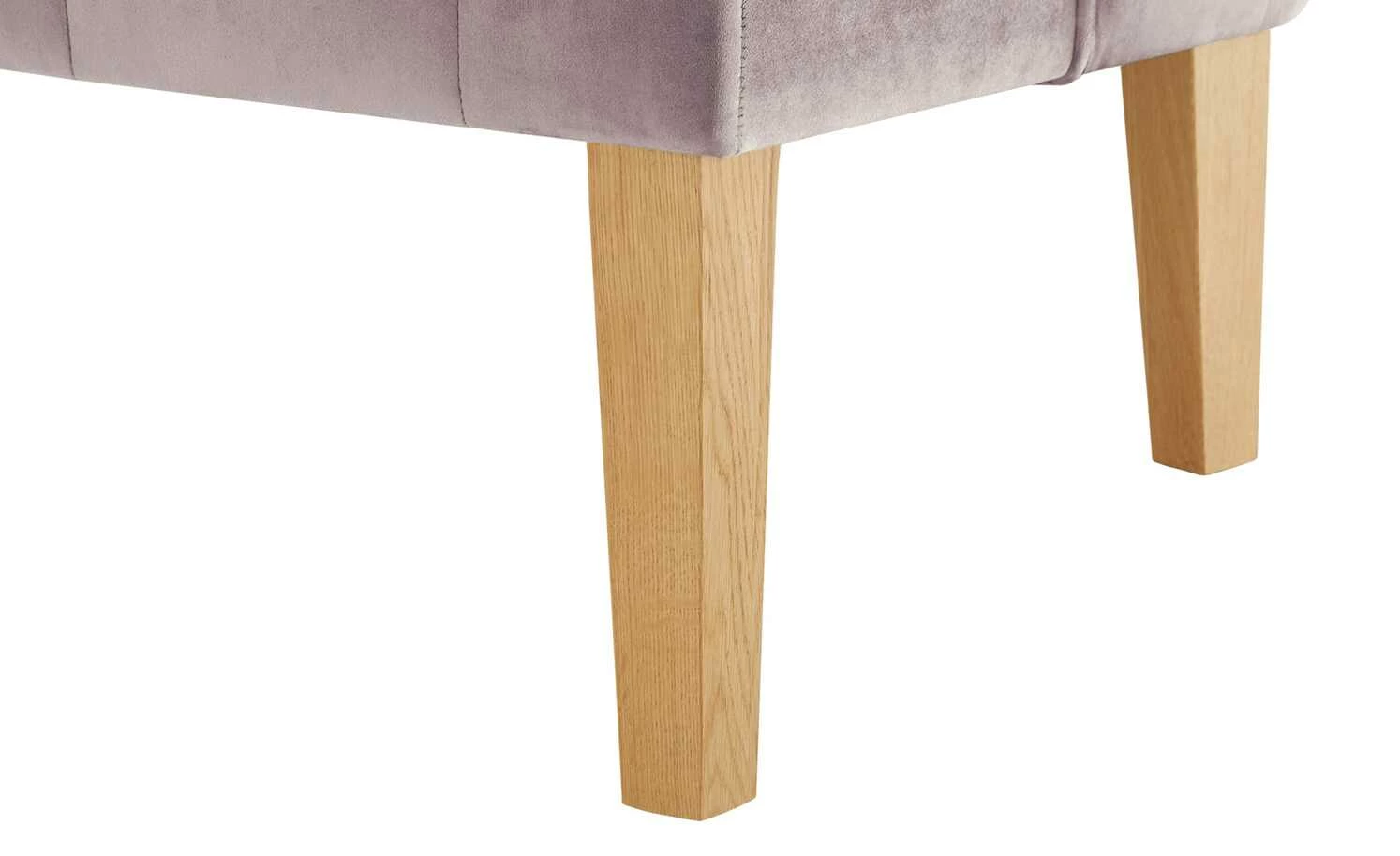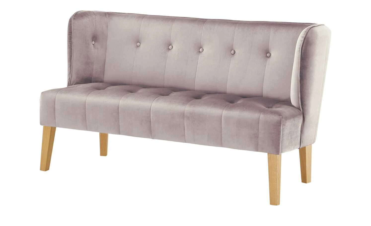 Das Küchensofa Bella fällt durch seinen leicht schimmernden, samtig weichen Mikrofaserbezug sofort ins Auge. Die dekorativen Zierknöpfe und die Längs-Steppung lassen Bella edel und gemütlich zugleich erscheinen. Die hochwertige Schaumstoffpolsterung und die Wellenunterfederung sorgen für langanhaltenden Sitzkomfort bei einer Sitzhöhe von 51 Zentimetern. Einen bewussten Kontrast zum dunklen Stoff bilden die hellen Massivholzfüße.