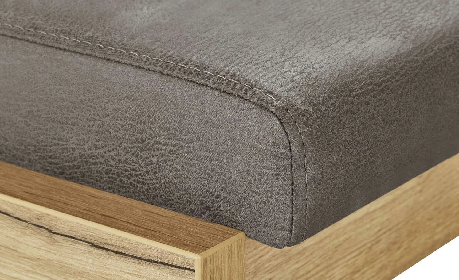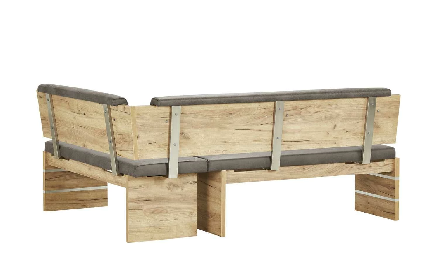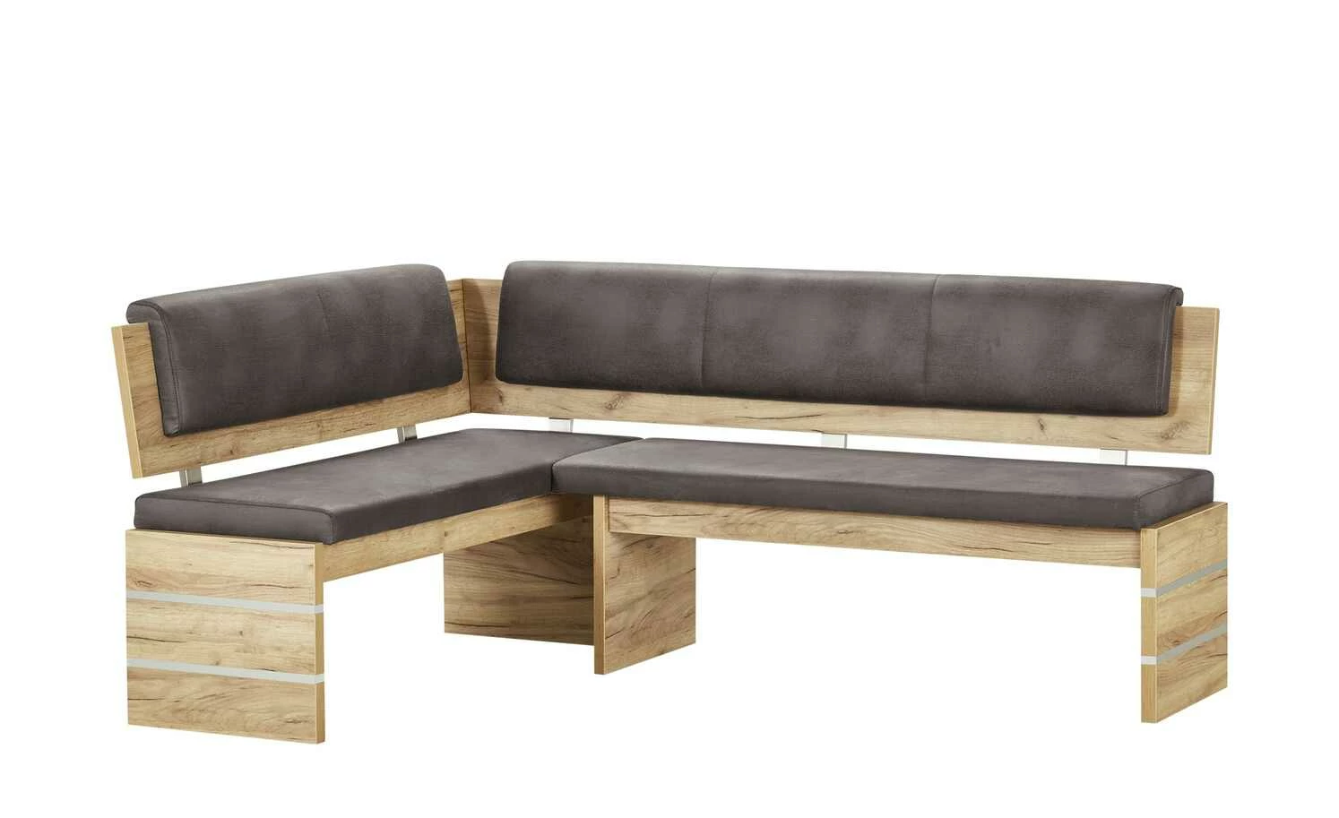 Eckbänke nutzen Ecken praktisch aus und bieten eine große Sitzfläche. Deshalb empfehlen wir die Eckbank Mira von uno. Sie ist L-förmig designt und verfügt so über Sitzplätze für mehrere Personen. Sitz- und Rückenfläche werden mit dicken Polstern ergänzt, damit Sie es bequem haben. Ihr Bezug besteht aus einer weichen Mikrofaser. Ein schöner Kontrast zum Gestell, das in Struktureiche Terra (Nachbildung) designt ist. Die Gestellwangen werden mit Metall-Applikationen akzentuiert.